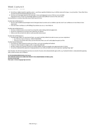 These are the notes for the first week of lectures (2 together). Topics Include: - Irrationality -Echo Chambers -Political Irrationality -motivated reasoning and evidence gathering