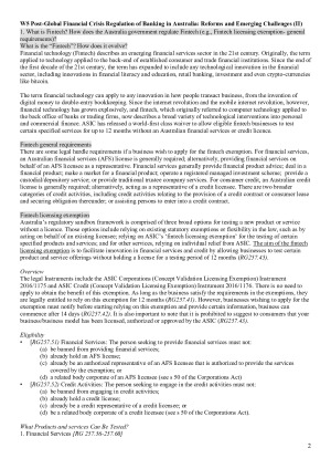 This notes includes all examinable topics: W5 Fintech W6 Intro to property law W7 Forms of lending and types of securities W8 Lending, securities and mortgages W9 Australian personal property securities law W10 Methods of banking and consumer lending W11 Methods of banking, cheques and electronic banking You will have: Each weeks' focus topics in an essay format. My own notes (and tables) from lectures, tutorial and readings. This note is an excellent document for you to prepare and answer exam questions.