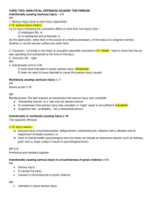Content skeleton of the notes of all topics covered in T2 2017 Jennifer Paneth's class TOPICS NON-FATAL OFFENCES AGAINST THE PERSON HOMICIDE SELF-DEFENCE SEXUAL OFFENCES PROPERTY OFFENCES PROPERTY OFFENCES 2 – OBTAINING BY DECEPTION PROPERTY OFFENCES 3 – ROBBERY AND BURGLARY ATTEMPTS CRIMINAL PROCEDURE