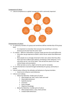 Notes based on the material from lectures, tutorials, and textbook readings. Topics include: - What is international business - Globalisation of markets and internationalisation of firms - Cultural environment of international business - Corporate governance, ethics, social responsibility and sustainability - Theories of international trade and investment - Country risk - Strategy and organisation in the international firm - Global market opportunity assessment - Exporting and global sourcing - FDI and collaborative ventures These notes helped me do well and so would highly recommend them!!