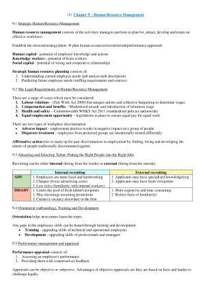 These HD notes summarise the entire MGMT1001 semester course content in a very concise manner. These notes are ideal for studying for the final exam as they contain all of the relevant MGMT theories and frameworks from the textbook and lecture/tutorial slides in addition to a number of key definitions and examples which are highly likely to be assessed in the final exam. Where relevant, these notes also include diagrams, tables, mnemonics and other visual representations to aid the reader's ability to understand and memorise course concepts in this very content heavy subject. Content included: Chapter 7: Individual and group decision making Chapter 1: The exceptional manager Chapter 12: Groups and teams Chapter 11: Motivating employees Chapter 10: Managing individual differences and behaviours Chapter 9: Human resource management Chapter 13: Power, leadership and effective communication Chapter 8: Organisational culture, structure and design Chapter 6: Strategic management Chapter 4: Global management