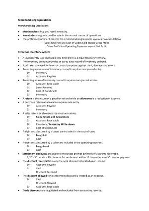 High Distinction ACCT1006 summary notes which serve as an effective revision guide for examinations. Merchandising Operations Accounting Subsystems Receivables Non-Current Assets Liabilities Equity