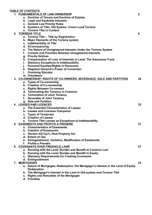 This comprehensive (and up-to-date) set of notes provides a detailed framework and guide to the Real Property course. The point is that everything is covered so that no detail is spared. Comprehensive case analysis is provided as well as relevant statutory provisions. Ensure that you do not miss out on any of the new content that may be introduced yearly by having the latest set of notes.