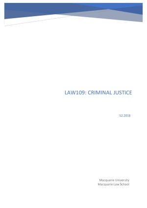 Comprehensive and well explained final exam notes for LAW109 created from a range of resources: lecture slides, tutorial content, textbook and online resources. These notes helped me achieve an overall grade of 87%, including (37/40) in the final assignment - Law Reform Submission. The following topics are addressed: 1. Philosophy of crime: What is it? (Week 1) 2. General Principles of Criminal Responsibility (Week 2) 3. HOMICIDE* (All forms discussed, relating to the final assessment) 4. Assault 5. Sexual Assault 6. DEFENCES*
