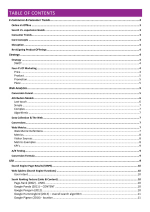 This is a comprehensive guide covering all topics in Digital Marketing. It includes: - definitions - examples linked to case studies - theory frameworks, outlines, and explanations All in an easy-to-read format with a table of contents to easily locate specific sections of notes on demand