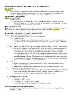 Answer guide which can be used in the exam that will allow you to cover every question you must answer quickly in detail. HD take in exam notes!! Topic List includes: - Topic 4A: Forensic Procedure - Topic 4B: Fingerprinting - Topic 5: Police Questioning - Topic 7: Identification Evidence