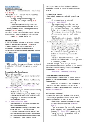 Detailed BTC3150 Taxation Law notes covering weeks 1-12. Both lectures and readings have been comprehensively summarised, as well as important cases and legislation. Topics include: - GST - Ordinary Income - Statutory Income (Capital Gains Tax) - Residency and Source - General Deductions - Specific Deductions - Tax Offsets - Fringe Benefits Tax This unit is very content heavy and these notes will save you a lot of time during exam revision! I achieved 81 for this unit (88% on the exam).