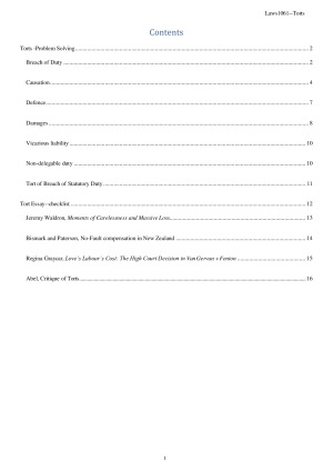 I got an HD in the final exam and an overall D finally. - Designed every step and a whole structure to answer the question in the final exam - Prepare the main ideas in terms of the essay question in the final exam. - Covered all topics that would be tested in the final exam, which could be checked in the sample. - Used pretty helpful tables and flow charts to help u have a better picture of what u learned in Torts law - ONLY 15 Pages(Colored and Detailed)