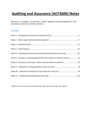 ACF3600 & ACC3600 - Auditing and Assurance - Comprehensive Notes