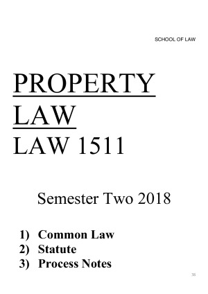 Notes from lectures, tutorials and textbook during property law course at Adelaide Uni semester 2 2018, see sample for list of topics covered.