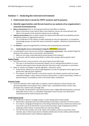 Seminar 1 – Analysing the external environment Seminar 2 – Analysing the internal environment Seminar 3 – Developing strategy Seminar 4 – Measuring performance Seminar 5 – Managing shareholder value creation Seminar 6 – Managing customer value and relationships Seminar 7 – Managing supplier relationships and strategic outsourcing Seminar 8 – Managing human capital as a strategic resource Seminar 9 – The environment and engaging in corporate social responsibility Seminar 10 – Managing strategic risks Seminar 11 – Management Controls