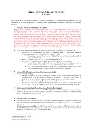About the notes: - These are one of my best notes and make for a very easy time in the exam. I found the structure of the notes very helpful and easy to follow. It is designed to reflect the kind of questions that could be asked in an exam. See in the sample, the text in red is the intros and an example of a way to structure your answer. - Each of the covered topics includes an extensive introduction to be used in an exam as well as a detailed hypo structure. - The notes have short case summaries as well as explanation of the importance and relevance of each topic. - Notes on all relevant cases and detailed notes on how these cases are relevant in the exam. About me: - I am a recent graduate of MLS and have finished uni with a high H1 average. - I have received several prizes for my academic achievements, including a scholarship covering the full tuition of my law degree, for placing as one of the top 2 students during my first year at law school. - I was a STS tutor. - I have been successful in securing numerous clerkships at top tier firms. - I have a graduate job at a top tier international firm. Topics covered in the notes: - Sources of international business law - International sale of goods - International carriage of goods (by sea and air) - International payments - Corruption in global business - Distribution, agency and franchising - Intellectual property and licensing - Foreign direct investment - Dispute resolution (negotiation, mediation, litigation and arbitration)