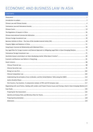 These notes are my class notes for the summer subject Economic and Business Law in Asia taught by Professors Andrew Godwin and Hop Dang. They contain summaries and analyses/critiques of the readings which are useful for the take-home exam.
