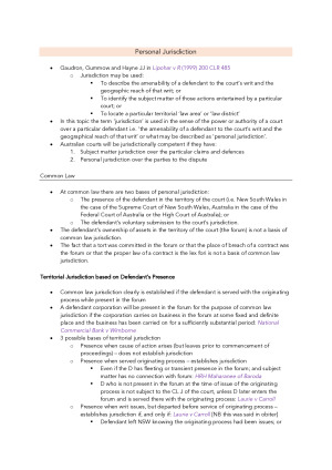 Very detailed summary notes, covering the entire course with in-depth case notes. These notes are for Ross Anderson's course. Topics covered: - Personal Jurisdiction - Substance and Procedure - Proof of Foreign Law - Exclusionary Doctrines - Choice of Law in Contract - Choice of Law in Tort - Foreign Judgments