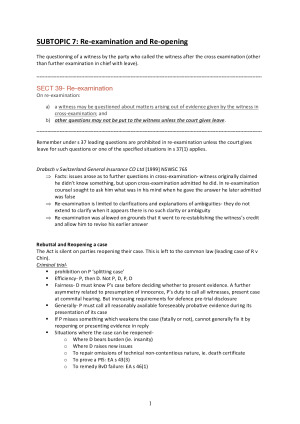 Distinction Evidence Topic, Legislation and Case Law Notes