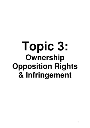 MLL410 Intellectual Property. A difficult subject made a whole lot easier through the use of these notes. I achieved a HD in this subject thanks to the in-depth case summaries, understandable processes, and a clearly presentable document. TOPICS INCLUDE: Topic 1: Introduction to Intellectual Property Topic 2: Trade Marks Registrability Topic 3: Ownership Opposition, Rights & Infringement Topic 4: Defences and Counterclaims Topic 5: Copyright A: What Copyright Protects Topic 6: Copyright B: Rights and Infringement Topic 7: Copyright C: Defences, Remedies, Ownership and Transmission Topic 8: Patents A: Rationales and the Concept of Invention Topic 9: Patents B: Validity Topic 10: Patents C: Infringement Topic 11: Designs