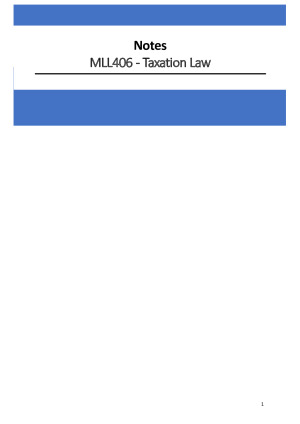 These notes helped me successfully achieve a HD for taxation law. They are formed through consolidating the following: lecture notes, textbook readings, cloud resources and personal research. The notes are color coordinated for ease of reference, as below: Green = case law Yellow = legislation Blue = exam relevance All of my notes work in conjunction with summaries I have made (answer plans). I also sell this documents which is a condensed version of these notes. The notes include: Intro to tax law Assessable income (Ordinary Income) Assessable income (Statutory Income) Deductions Specific deductions Trading Stock Taxation of different entities Other taxes Fringe Benefit tax Taxation administration and avoidance Good luck, i hope you find my notes helpful!