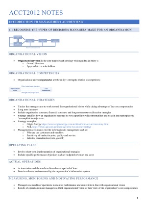 ACCT2012 Management Accounting Notes