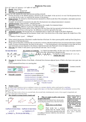 This is a very detailed notes that cover the main points of every topic of this unit. I wrote the notes during semester and used this for my exam perparation and I got a HD. If you are not very confident about physics, please have a look at this. I am sure it will be pretty helpful. List of topics: Pressure Flow rate Newton's three laws Surface tension Torque Circular motion Fick's law Vapour pressure Thermal energy transfer The pulley Electricity Waves Lens (human eye) Radiation CVS system Bioelectricity (membrane potential, action )