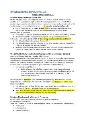 A comprehensive set of notes covering the entire course. Topics include: 1. EQUITABLE PRINCIPLES AND MAXIMS 2. FIDUCIARY RELATIONSHIPS AND CONFIDENTIAL INFORMATION 3. EQUITABLE PROPERTY AND ASSIGNMENTS 4. ESTOPPEL IN EQUITY 5. UNCONSCIONABLE CONDUCT 6. TRUSTEES –RIGHTS, POWERS AND DUTIES 7. RESULTING TRUSTS 8. CHARITABLE TRUSTS 9. RIGHTS OF BENEFICIARIES 10. VARIATION AND TERMINATION OF TRUSTS 11. NATURE AND CREATION OF EXPRESS TRUSTS With these notes I was able to achieve a HD.