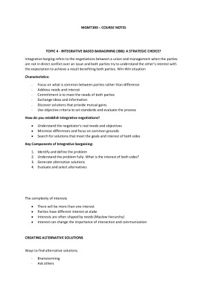 Simple notes that includes all the content from lectures, tutorials and further research to help readers understand and retain the information. Notes that will spare you time with studying so that you are able to go out and still smash the exam!! Topic List: Topic One: The Art of Negotiation Topic Two: Planning to negotiate effectively Topic Three: Strategy and Tactics of distributive negotiation Topic Four: Integrative Based Bargaining Topic Five: Perception, cognition and emotion Topic Six/ Seven: Negotiation Power Topic Eight: Relationships and teams – Understanding the complexities of negotiations Topic Nine/ Ten: Ethics in Negotiation Topic Eleven: International and cross-cultural negotiation Topic Twelve: Best Practices in negotiations