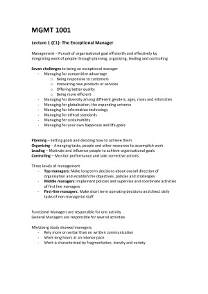 HD FULL COURSE NOTES (LECTURE SUMMARIES) Topics: - Individual and group decision making - The exceptional manager - Groups and teams - Motivating employees - Managing individual differences and behaviours - Human resource management - Power, leadership and effective communication - Organisational culture, structure and design - Strategic management - Global management