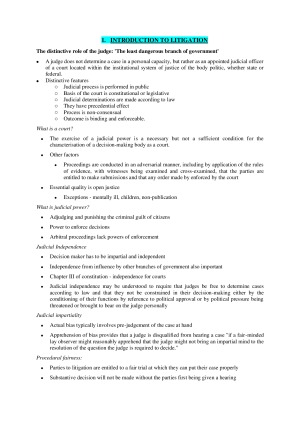 Detailed notes on all topics including: - Introduction to Litigation - Refresher on the NSW Court System - Case Management - Costs - Security for Costs - Funding Litigation - Limitation Periods - Freezing and Search orders - Offers of Compromise - Client Legal Privilege - Pleadings - Standing - Causes of Action - Class Actions - Service - Discovery - Subpoenas - Witness Preparation - Summary Disposal - Appeal - Enforcement and Execution of Judgement - Pro Bono Work - Alternatives to Litigation - Court annexed mediation - Enforceability of ADR Clause - Settlement Negotiations Privilege - Arbitration - Technology - ODR
