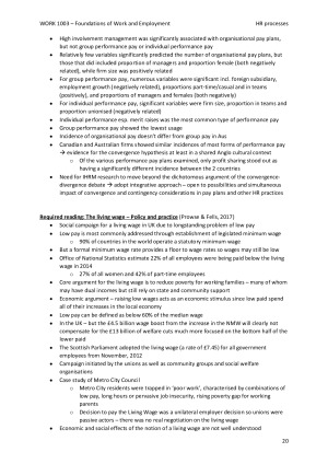 Notes organised by week with lecture notes, online modules, assigned readings and ER in the news articles. I have made these detailed notes using all assessable content for the course - online modules, lecture slides, lecturer comments and examples, required readings of journal articles and news articles, and the textbook. All the important information for the 3rd and final topic in WORK1003 (HR processes) to help you get a great mark for tutorial participation, the mid-semester exam and the final exam. Topics in my notes are according to the week they were taught 10. Recruitment and selection 11. Pay and reward 12. Performance management 13. Conclusion Notes for the required readings are also included in these notes: Week 10 Nankervis et al. (2014) - Chapter 6: Talent attraction and selection Warhurst et al. (2009) - Lookism: The new frontier of employment discrimination Week 11 Long & Shields (2005) - Performance pay in Canadian and Australian firms: A comparative study (pg. 1783-90, 1804-07 only) Prowse & Fells (2017) - The living wage: Policy and practice Week 12 Nankervis et al. (2014) - Chapter 8: Management and performance Rosenblat (2018) - Chapter 5: Behind the curtain: How Uber manages drivers with algorithms Week 13 Godard (2014) - The psychologisation of employment relations Goods et al. (2019) - Is your gig any good? + ER in the news articles (useful for final exam and tutorial discussions)