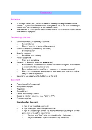 Covers the entire content for Real Property Law. Comprehensive notes, including all relevant cases from lectures, tutorials, readings and assignments. Topics covered: Doctrine of estates and tenure; torrens title; boundaries to land; leases; easements; covenants; mortgages; native title.