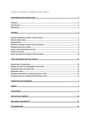 Summaries of all cases from sport in the law textbook and from lectures/seminars presented. Quick and easy way to access cases for each topic in the exam under pressure. TOPICS included are as follows: - Unincorporated associations - Violence - Tort/Negligence and Civil Liability - Corruption and Gambling - Doping - Employment - Intellectual property - Behavioural misconduct - Discrimination