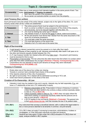 ALL YOU NEED Topics: - Formalities - Co-Ownership - Mortgages - Easements - Covenants - Leases