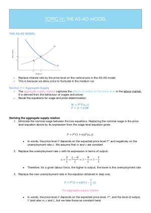 These are full ECOS2002 notes, they cover each topic of the course. They have been created using lecture slides, lecture recordings (all lectures were watched and paused frequently to add to the lecture slides), the textbook (also fully read and summarised in the notes) and my own independent research. The notes include two parts: 1. The full notes (at the beginning) - these are the long, complete notes that have not been cut down. 2. A summary (proceeding the notes) that summarises and includes only the information necessary. This makes the content easier to study for the exam. The topics in the notes include: 1. Economic performance and measuring performance 2. The LS-LM model 3. The labour market 4. The AS-AD model 5. Inflation and unemployment; the Phillips curve 6. Economic growth 7. Consumption and investment 8. Open-economy macroeconomics