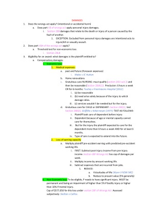 Breakdown of each test for ALL negligence (unintentional tort) breach topics, damages, vicarious liability and breach of statutory duty. Breakdown: - Damages - Duty of Care - Breach - Causation - Remoteness - Pure Mental Harm - Defences to unintentional tort (negligence) - Vicarious Liability - Breach of statutory duty