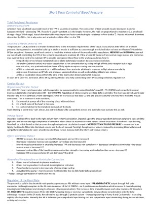 These condensed 'cheat sheets' are the easiest way to learn a huge load of content, with each topic broken down into multiple parts it makes it easy to focus on what you do and don't know. These are then broken into easy to memorise and learn dot points rather than huge paragraphs. Topics cover: - Short term control of BP - Long term control of BP - Hypertension - Exercise I = muscle metabolism - Exercise II = the CV system under stress - Acid-Base Regulation - Disturbances to Acid-Base Regulation - Endocrinologgy - Regulation of potassium concentration - Calcium homeostasis
