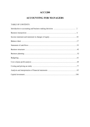 HD 90 notes!! Topics covered: Introduction to accounting and business making decisions Business transactions Income statement and statement in changes of equity Balance sheet Statement of cash flows Business structures Business planning Budgeting Cost-volume-profit analysis Costing and pricing an entity Analysis and interpretation of financial statements Capital investment
