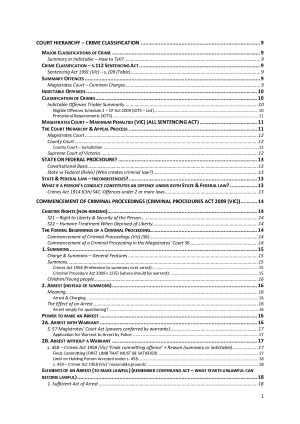Covers all examinable topics for 2019. This includes: - Crime Classification - Commencement of Criminal Proceedings - Search & Seizure - Fingerprinting & Forensic Procedure - Police Questioning - Identification Evidence - Trial of Indictable Offences - The Machinery of Prosecution - Defence Pleadings - The Jury System These notes have been summarised to only include what is needed from each learning objective, and made to be as concise as possible so as not to confuse in the exam. Helping me to achieve an overall HD (84) in this unit.