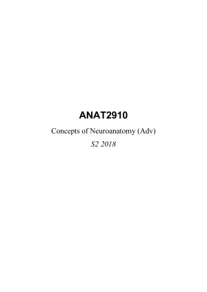 Comprehensive set of notes for ANAT2910 Concepts of Neuroanatomy (Adv) to help you study for BOTH your practical and theory exams. It summarises all the lecture and tutorial materials into one concise document, helping you tackle this challenging course and maximise your marks. Instead of wasting your time sorting through lecture slides, textbook and tutorial materials, get started with your studying straight away (perfect for cramming too)! Good luck! Achieved an overall HD mark of 96 – 1st in Course Note: Please purchase both Part I and Part II for full set. Notes separated due to size constraints. Sorry!