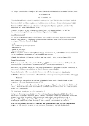 Will help you get a HD: Contains the following topics: Defence Power Interstate Trade Freedom of political communication Express rights (freedom of religion, property, jury) Immunities Rights concepts (For final exam essays) I was assigned proceduralism, but have also included general extra material you can use in your exam essay for extra bonus marks - it was very well received in my paper