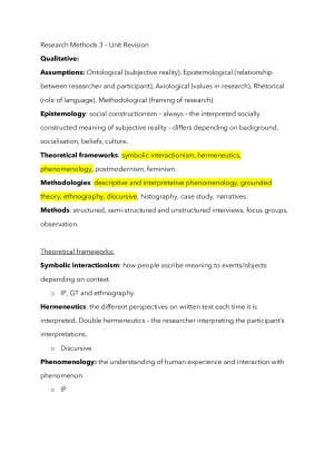 - theoretical frameworks - methodologies - methods - rigour - interviews - focus groups - sampling - recruitment - data analysis - parametric v non parametric - factors and interactions