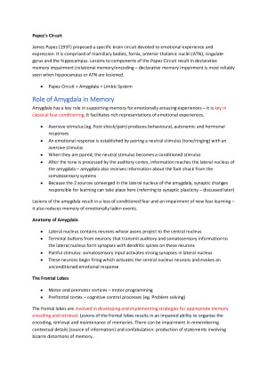 These notes include summaries of all the lectures as well as examinable readings and simplified explanations to help you understand the content and break it down. Everything on the 2019 exam is covered in these notes. A contents page of all the topics is included for convenience. Topics include: TMS, EEG, fMRI, Statistical Testing, Neurobiology of Memory (HM, hippocampus, temporal lobes, diencephalon, Papez's circuit, cognitive theories of memory etc.), psychopharmacology (glutamate/GABA, serotonin, dopamine, noradrenaline etc.) and neurogenetics and behavioural genetics.