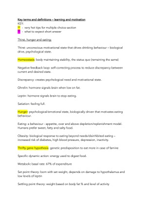 Tips for MCQ, topics include: hunger, eating, thirst, aggression, drugs, positive and negative emotions, sleep, self concept, self esteem etc. Also some overall tips for the unit because I found in semester 1, 2019, we did not get much guidance for the exam.
