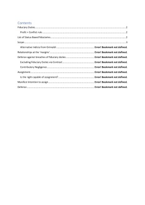 Covers lectures and readings from week 1 to week 6 Fiduciary duties, status based fiduciaries, scope, relationships at the margins, defense against a breach, assignment, manifest intention, defense.