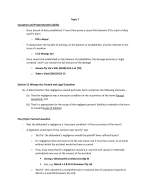 These notes were used to pass the MLL213 Torts exam in 2015. 100 pages.