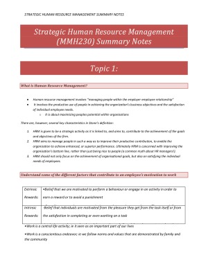 Detailed outline of all learning objectives for Strategic Human Resource Management. In depth understanding of all topics.