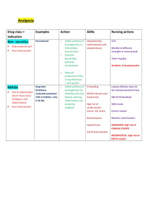 A comprehensive study of all the drug classes covered during the semester! - Analgesic medications - Anti-infective medications - Cardiac medications - Respiratory medications - Gastrointestinal medications All drug classes are explored including: * 2 or 3 common examples * Mode of action * Significant side effects * Nursing considerations Created using the information from lectures and textbooks.