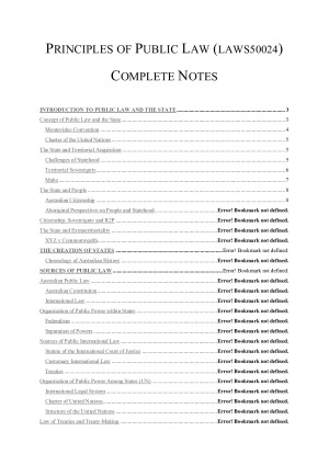 Complete PPL Notes with contents, headings, subheadings and tables. Notes are clear and structured in dot-point form. Full case summaries aren't included - only the most important relevant parts for the exam are. Used semester 1 2019 for Matthew Albert's stream. NOTE: the table of contents appears normally in the full notes, unlike the sample