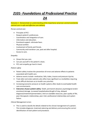 Detailed and comprehensive notes that covers all lectures and tutorials and will help you study for the exam. These notes will also help you study for your VIVA in 2102. Topics include- epidemiology, pathophysiology and symptomatology of the health breakdown of conditions, clinical reasoning cycle and scenarios studied, laws, open disclosure.