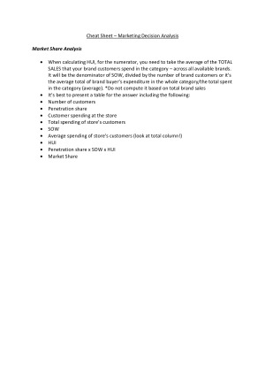Cheat Sheet Marketing Decision Analysis from an HD Student 90%