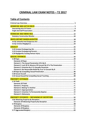 MLL214 Criminal Law Exam Notes (Full Contents Page)