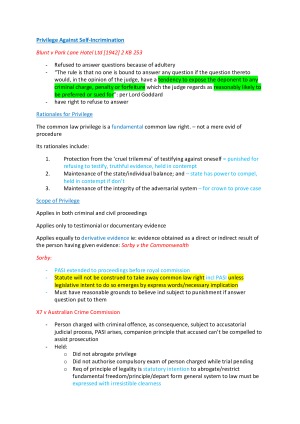 Comprehensive Evidence Notes Incl Detailed Case notes, Tutorial notes, Lecture notes, Textbook notes and Policy Topic 1: Introduction and Relevance Topic 2: Competence and Compellability Topic 3: Privilege Topic 4: Examination of Witnesses Topic 5: Credibility and Character Topic 6: Right to Silence Topic 7: Tendency and Coincidence Topic 8: Hearsay Topic 9: Admissions Topic 10: Illegally Obtained Evidence Topic 11: Opinion Evidence